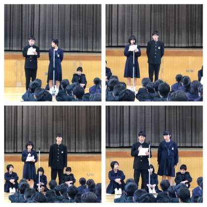 各クラスの学級代表からクラスの良かったところ、悪かったところ今後の目標について発表がありました。