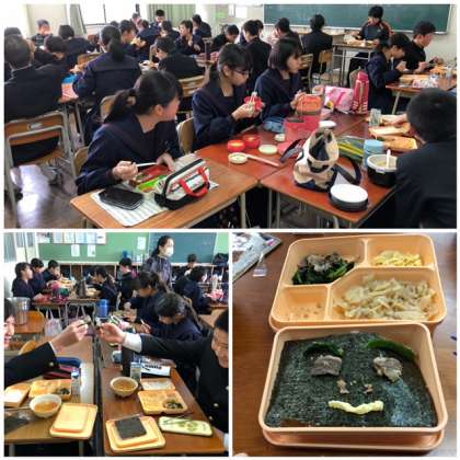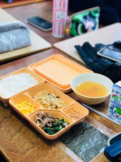 副食器に入った具を選び、のりに巻いて食べたり、ご飯の上に具を乗せたりと、それぞれの食べ方で楽しみながら頂きました。