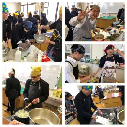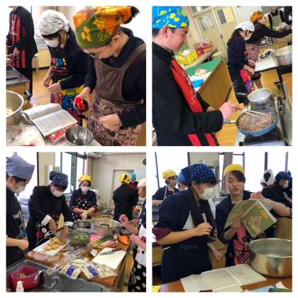 2年生家庭科、調理実習の様子です。