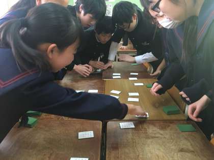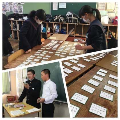 来週行われる百人一首大会に向けて、班別に分かれて練習しました。