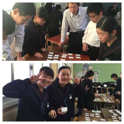 ちなみに、クラス代表の師範戦に出場する二人は、1対1で行いました。レベルが高く、上の句でどんどん札を取っていました。