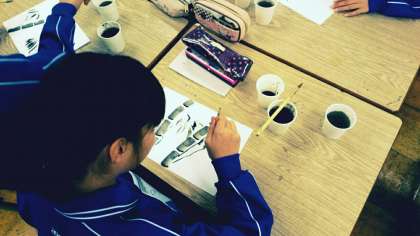 墨汁を使い、いつもとは少し違った技法に挑戦し、作品を完成させました。