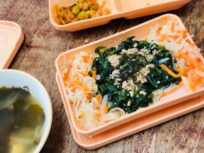 (肉炒め、ほうれん草、ナムル、きざみのり)