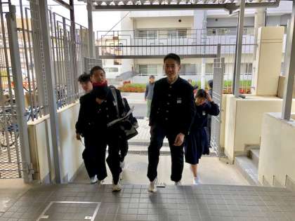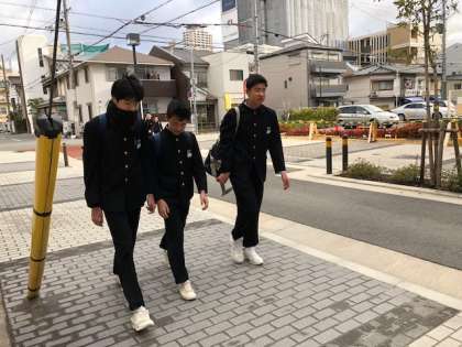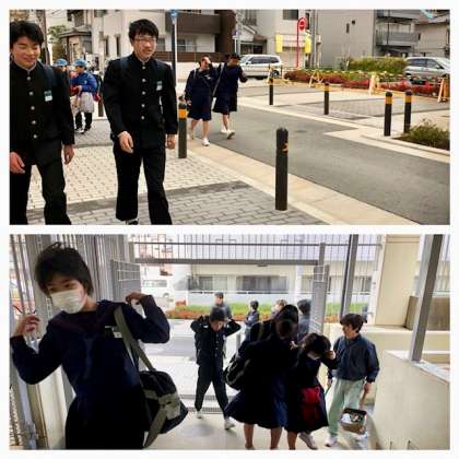春の嵐と呼ぶにふさわしい天気の中、元気に登校しています。