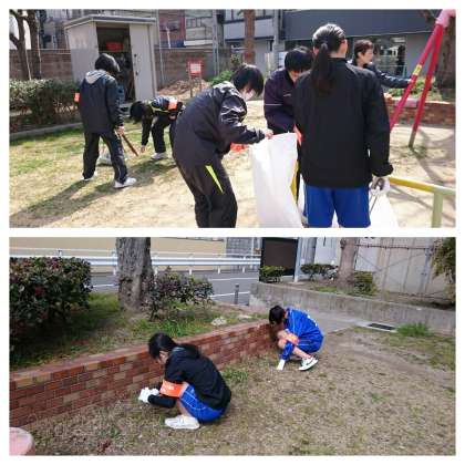 生徒会の呼び掛けに今年もたくさんの生徒が参加し、公園の清掃を行いました。