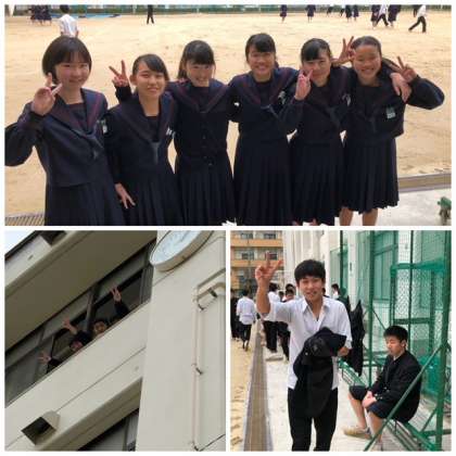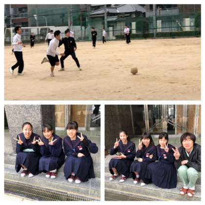 校舎から顔を覗かせ、先輩達が遊んでいる姿を名残惜しそうに眺めている後輩の姿も見られました。
