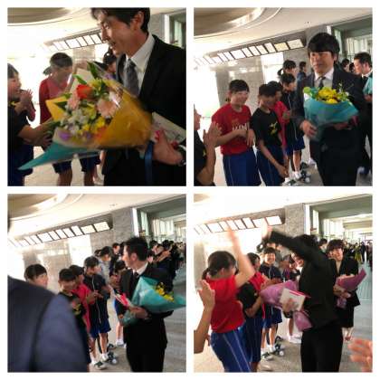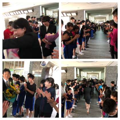 最後には部活動をしていた生徒たち、そして多くの卒業生が花道を作り、盛大な拍手の中、笑顔で送りました。