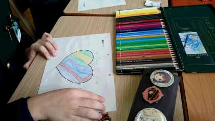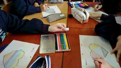 その後、今の自分自身の心を色や形に表して色ぬりをしました。