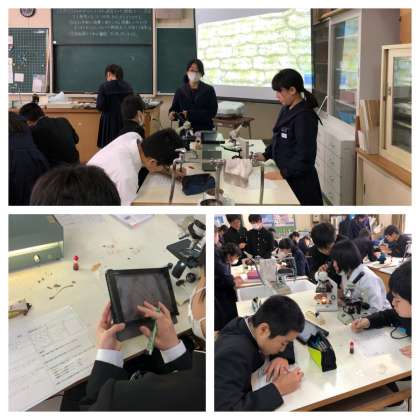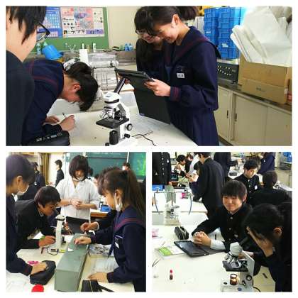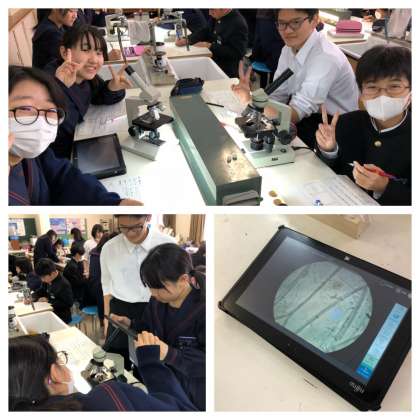 顕微鏡の接眼レンズ内をタブレットで撮影し、細胞をスケッチしました。