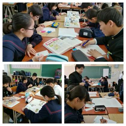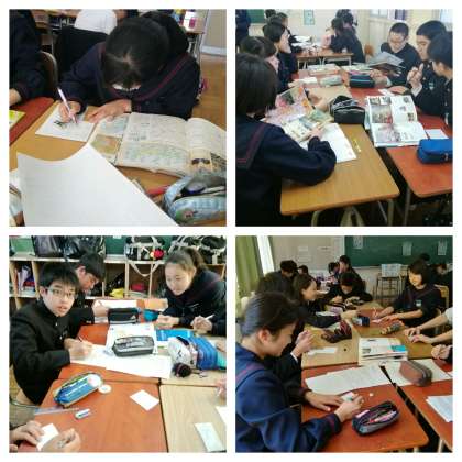 3年生は修学旅行の調べ学習として班新聞を作成しています。