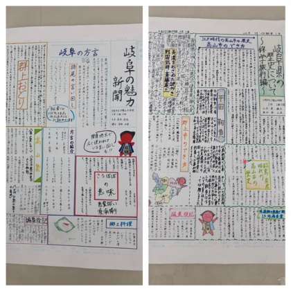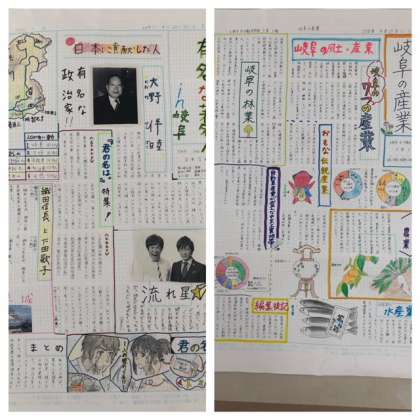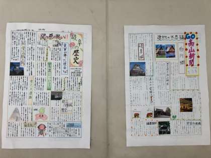 3年生の廊下には修学旅行に向けての調べ学習新聞が掲示されています。