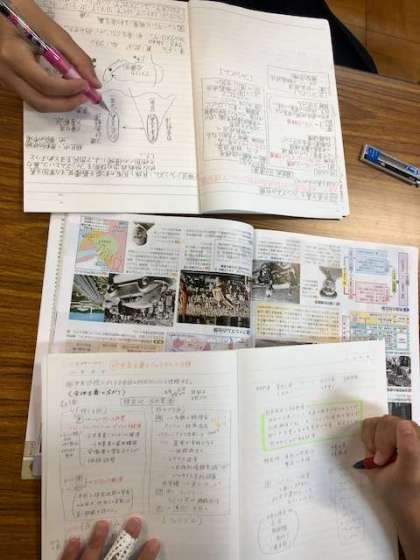 資料映像を使って世界恐慌後の各国の対応について、本時はドイツのヒトラーに中心に学習しました。