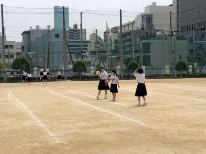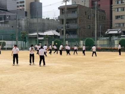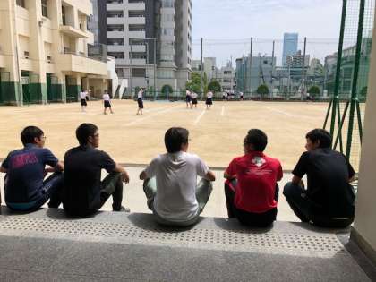 《夕中昼休みグランド見守り隊》の先生たちの見守りの中、元気に遊んでいます。