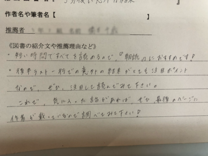 これで気に入った話があれば、ぜひ最後のページに作者が載っているので調べて読んでみてください。