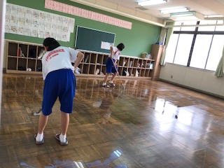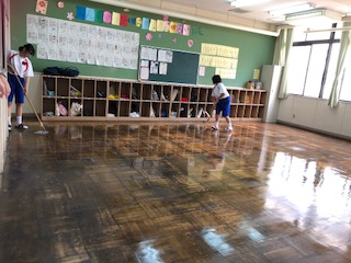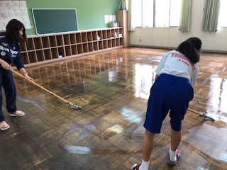 クリーンアップ終了後には美化委員がワックスがけをしてくれました。