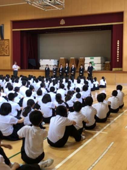 その後実習生からの挨拶、陸上部の表彰がありました。