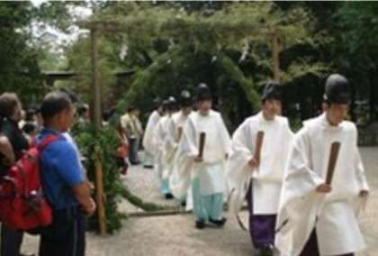 また本日、900年間1度も欠かすことなく皇室の御安泰と国家の繁栄、国民の隆昌を祈る格式の高いお祭りである旬祭がご奉仕されており、運良く神道儀式を見ることのできた班は興味津々でその様子を見ていました。