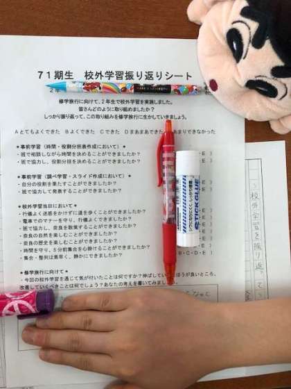 振り返りシートで自分自身の行動を振り返り、感想文を書きました。