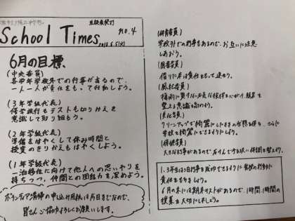 各学年、学校外での行事があるので、一人一人が責任を持って行動しよう。
