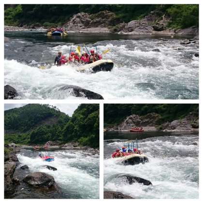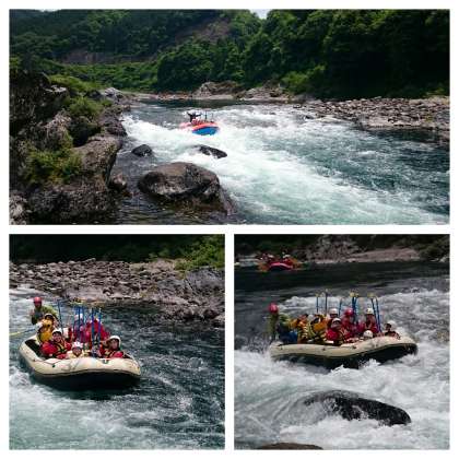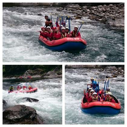 声を合わせ、力を合わせラフティングボートは長良川を下っていきます。