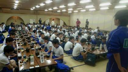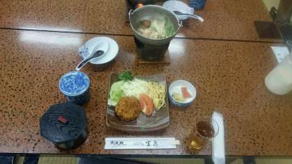 昼御飯は飛騨牛ミンチカツときしめん鍋のセットです。