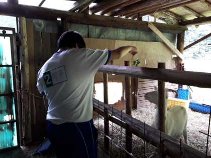 ヤギの餌やりに挑戦!