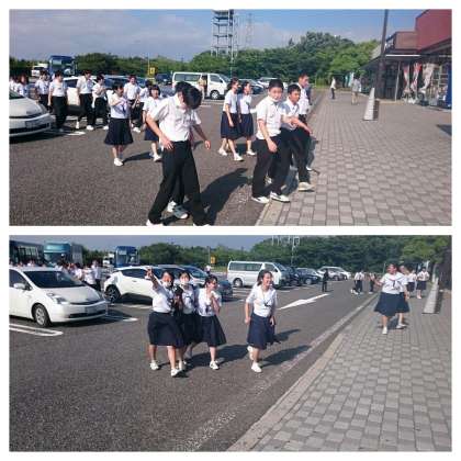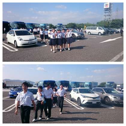 最後のトイレ休憩を済ませ、バスは大阪夕陽丘中学校へ。