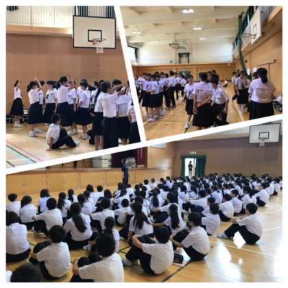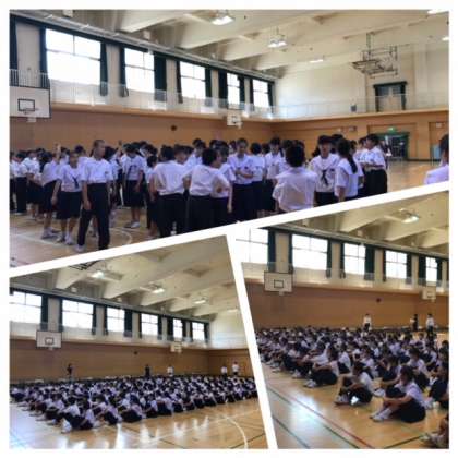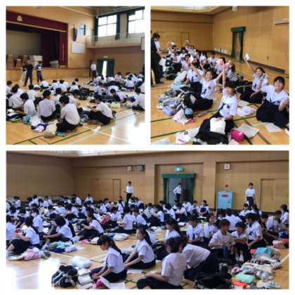 明日の一泊移住に向けて、持ち物をしっかり確認していきます。そのあと、行程中でいろいろな隊形で集合するため、並び方の練習をしました。声をかける人、手をあげて位置をわかりやすく示す人、指示をきちんと聞いて行動する人、みんなが集中して素早くできていました。