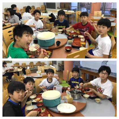 待ちに待った夕食です。おかわりをする人も多く、しっかり食べました。