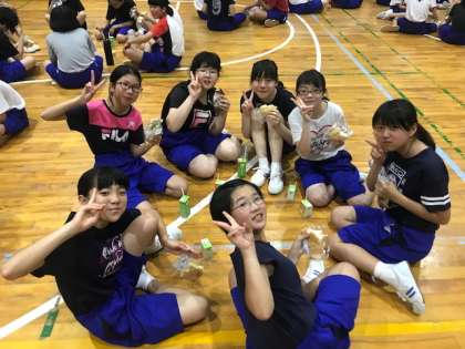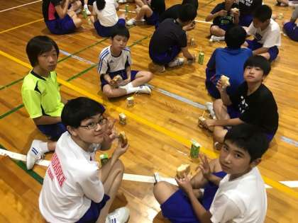 全力で楽しんだ室内オリンピックのあとは、パンと飲み物を補給します。