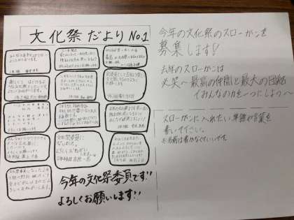 君が選んだ単語や言葉が夕中文化祭のスローガンになるかもしれません。