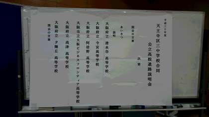本日、PTA主催の天王寺区三中学校合同公立高校進路説明会が大阪ビジネスフロンティア高校で行われました。