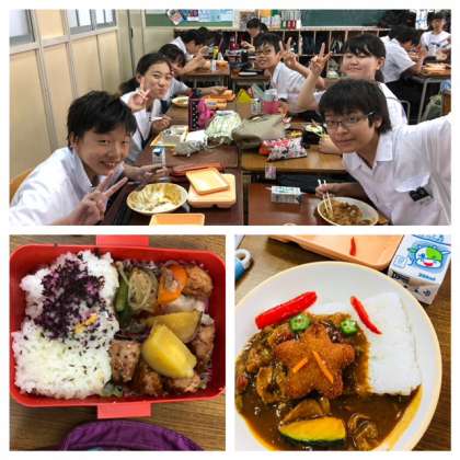 今日のカレーは、なす、パプリカ、かぼちゃ、オクラなどの野菜を使っています。