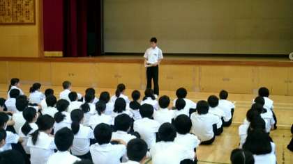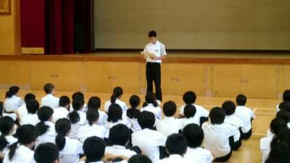 集会のはじめに生徒会長より、義援金募金ご協力のお願いについて話がありました。