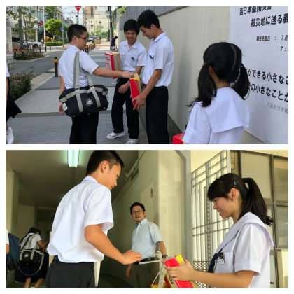 本日より生徒会による西日本豪雨災害被災地に送る義援金募金活動が行われています。