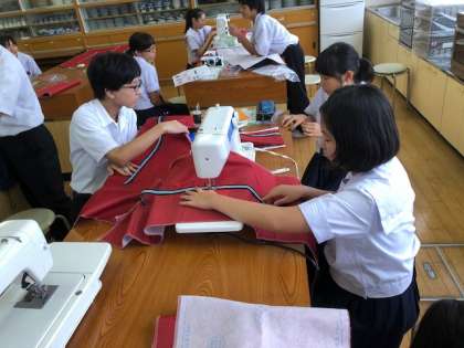 ミシンやアイロンに悪戦苦闘しながらも頑張っています。