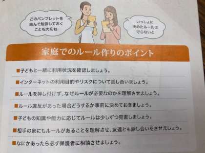 ご家庭でもスマホやインターネット使用についてのルールを話し合い、マナーを守って利用出来ているか確認しましょう。