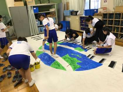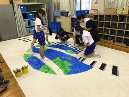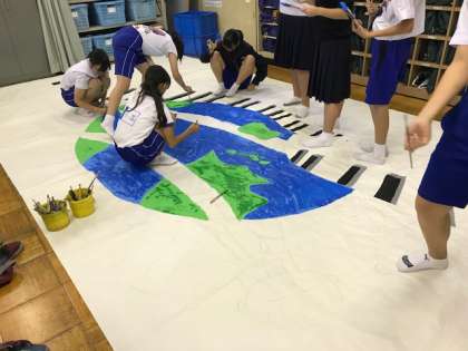 文化祭の舞台背景を作成しています。