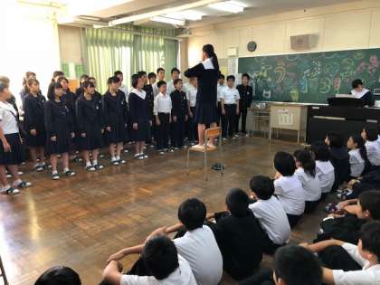 大きな歌声と素敵なハーモニーで1年生を魅了します。