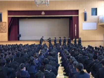 その後、実習生の挨拶、バレー部の表彰がありました。
