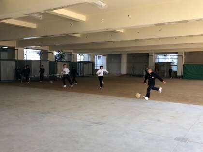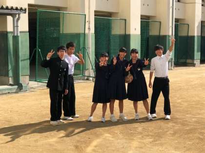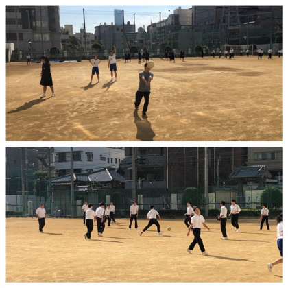 秋晴れの天気のもと、サッカーやバレーなどで元気に遊んでいます。