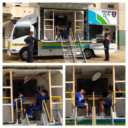 講演の後は運動場へ移動し、天王寺消防署地域担当の方より体験指導をいただきました。
