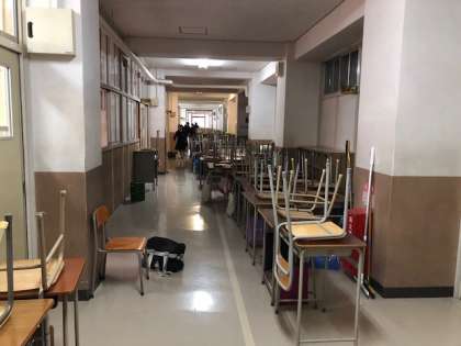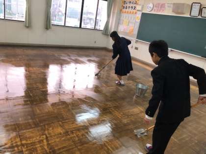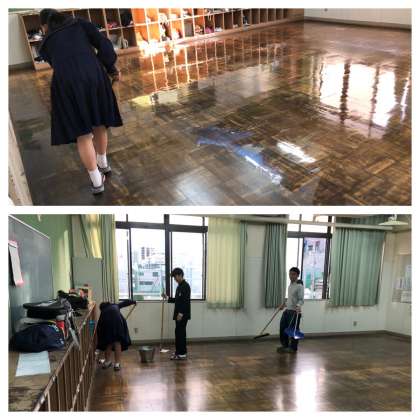 終礼後、机を廊下に出し、美化委員が協力してキレイにワックスをかけてくれました。