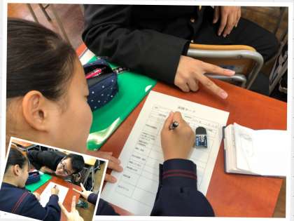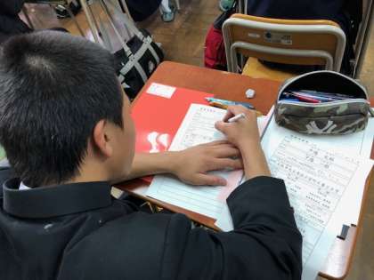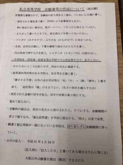 3年生は個人撮影の待ち時間に面接カードの記入や私立願書の書き方についての説明を受けました。
