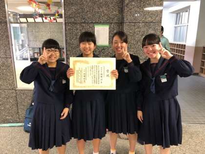 夕中から1年生が第七回全国書写書道総合大会の平成三十年度全国硬筆コンクールにおいて優秀な成績をおさめ、表彰をいただきました。