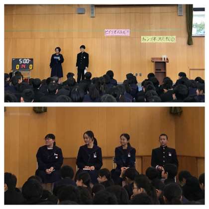 図書委員司会のもと、各クラス代表4名が5分間のバトルを繰り広げました。