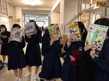 放課後、図書室で雑誌プレゼント企画が行われました。