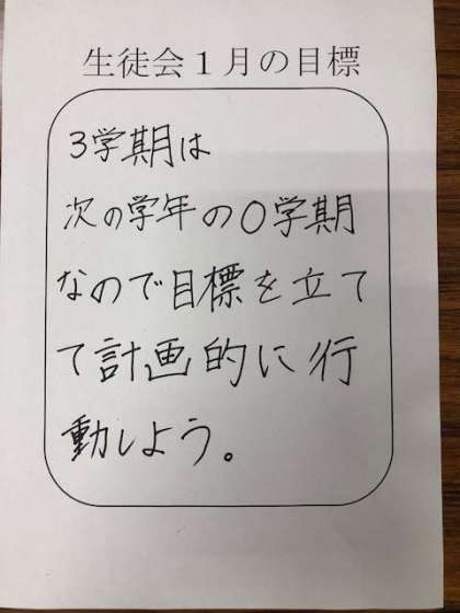 3学期は次の学年の0学期なので目標を立てて計画的に行動しようです。