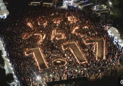 被害の大きかった神戸市中央区では、『1・17のつどい』が開かれ、『1995 つなぐ 1・17』の形に並べた竹灯篭に火を灯し、地震発生時刻の午前5時46分に犠牲者を悼んで黙祷が捧げられました。