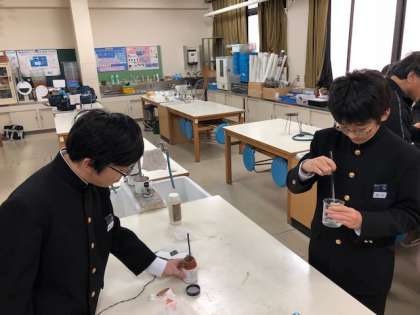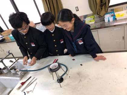 銅に亜鉛メッキをつけて真鍮(黄銅)に変化させる実験をしました。